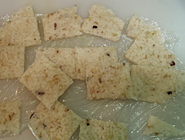 1ごはんをラップで挟んで5mmくらいの厚さにつぶす。(具を入れる場合はあらかじめ混ぜておく) 2ラップの上側を外して電子レンジで2分、裏返して2分加熱し、乾燥させる。 3少し冷ました後、食べやすい大きさに切る。